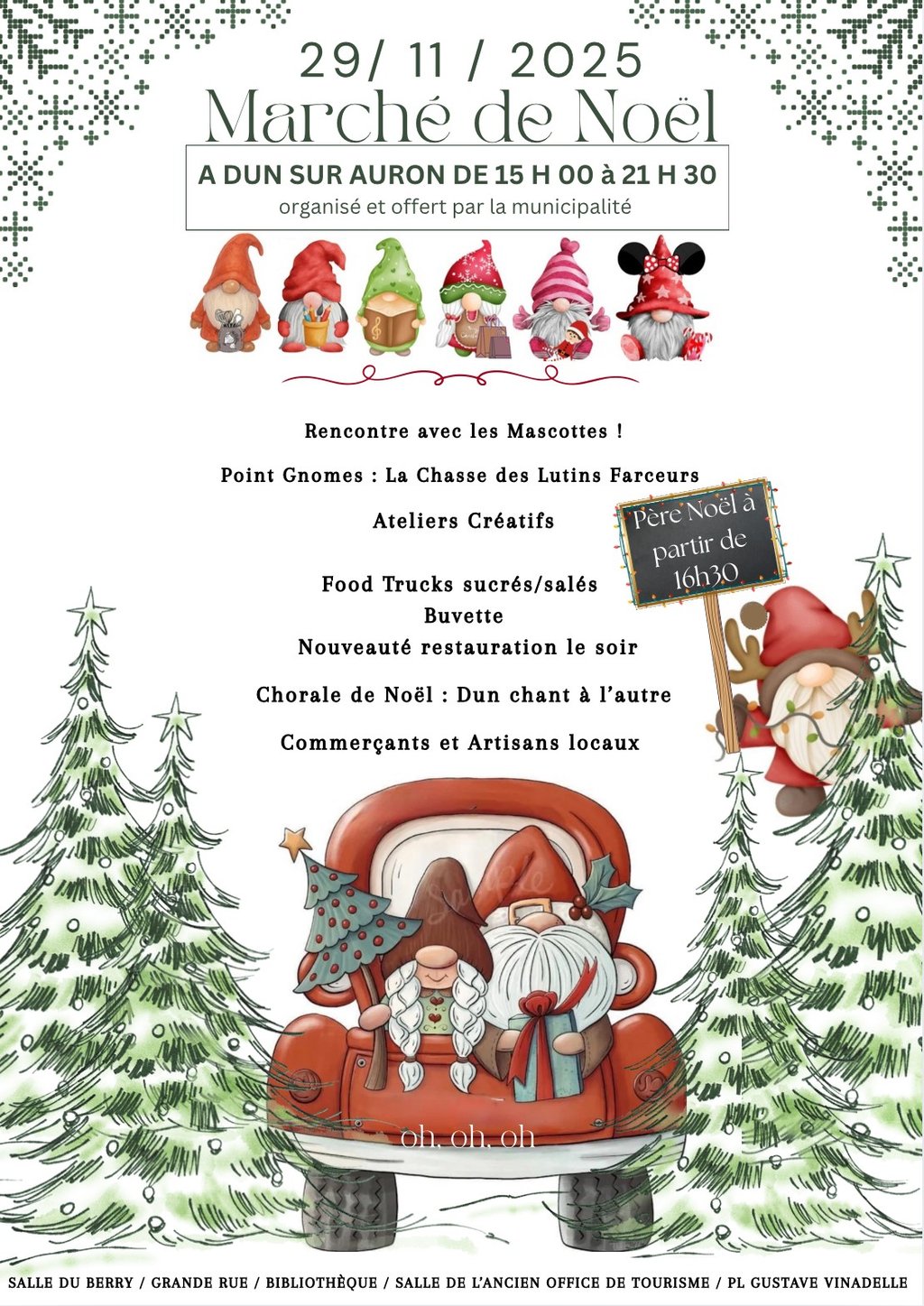 La Municipalité organise son Marché de Noël, Samedi 29 Novembre 2025 de 15h00 à 21h30, de la Place Gustave Vinadelle jusqu'à la Salle du Berry en passant par la Grande Rue.