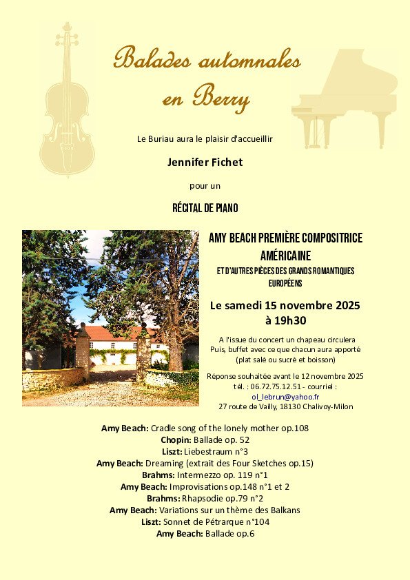 Laissez-vous emporter par la magie du piano et la beauté du Berry en automne… une soirée musicale à ne pas manquer !